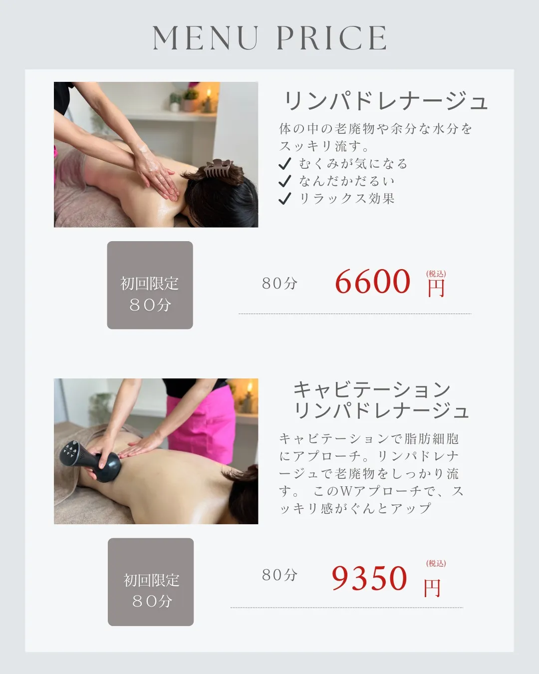 #リンパドレナージュ#リラクゼーション#キャビテーショ#キャビテーションリンパドレナージュ#アロマ#アロマリンパドレナージュ#骨盤矯正#ドライヘッドスパ#肩こり#疲れ#むくみ#大船#鎌倉#湘南